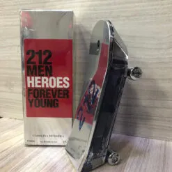 The Bottle: A revolutionary fragrance calls for a revolutionary bottle. 212 Heroes opens a new chapter in industrial design with an innovative glass and chrome bottle that evokes the silhouette of a skateboard and captures the spirit of a new generation.