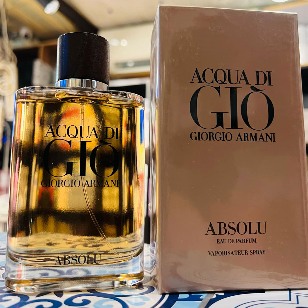 The Patchouli provides a perfect balance, revealing a warm and sensual twist. Giorgio Armani Acqua Di Gio Absolu is true statement of natural elegance celebrating the relationship between man and nature to create a woody fresh scent.