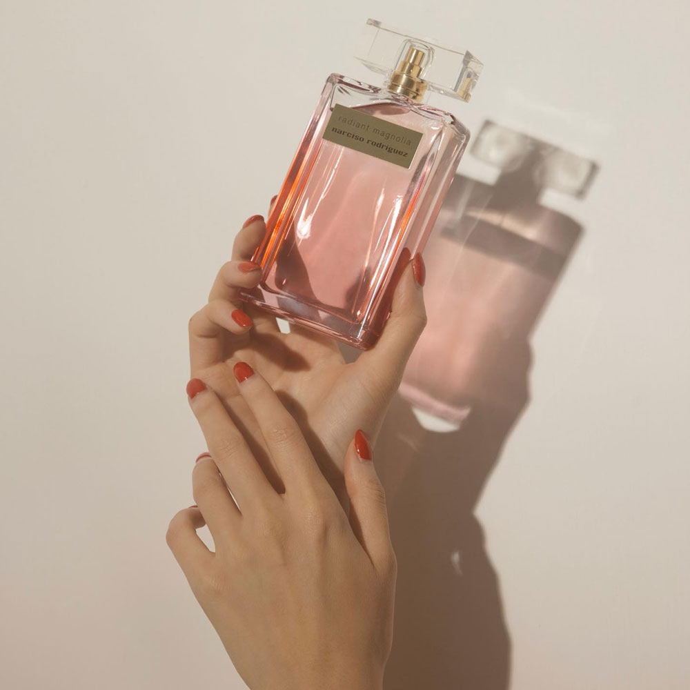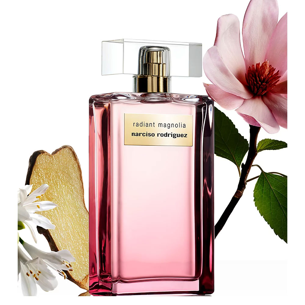 Radiant Magnolia is a luminous floral-musk fragrance. It opens with bright citrus and delicate magnolia, revealing a heart of rose and white flowers, all layered over the signature Narciso musky base. The scent feels radiant, clean, and softly sensual.