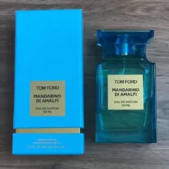 About the Bottle: Mandarino di Amalfi is contained in a sky-blue bottle. Capped with a gold-tone metal inset, the 50 mL flacon has the sleek, architectural look of a chess piece, adding monumental beauty to a dressing table or grooming area.